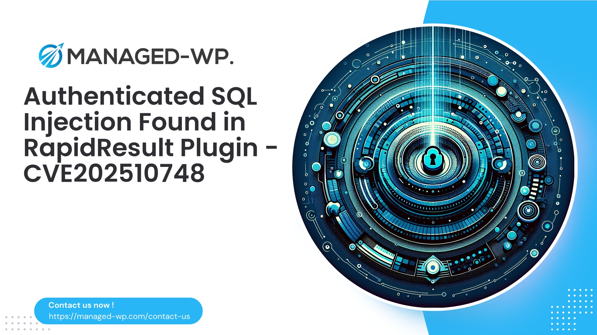 Executive Summary: The RapidResult WordPress plugin, versions 1.2 and earlier, harbors a significant SQL injection vulnerability (CVE-2025-10748). This flaw allows authenticated users with Contributor-level access or above to manipulate database queries in unauthorized ways. Although exploitation requires authenticated access, Contributors are common on many WordPress sites, especially multi-author or community-driven platforms. This detailed briefing covers the nature of the vulnerability, risk assessment, immediate mitigation steps, best long-term defenses, and how Managed-WP’s security services can proactively protect your site prior to official plugin remediation.