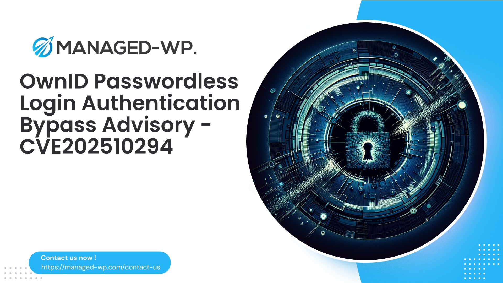 • A critical authentication bypass vulnerability (CVE-2025-10294) impacts OwnID Passwordless Login plugin versions up to and including 1.3.4.