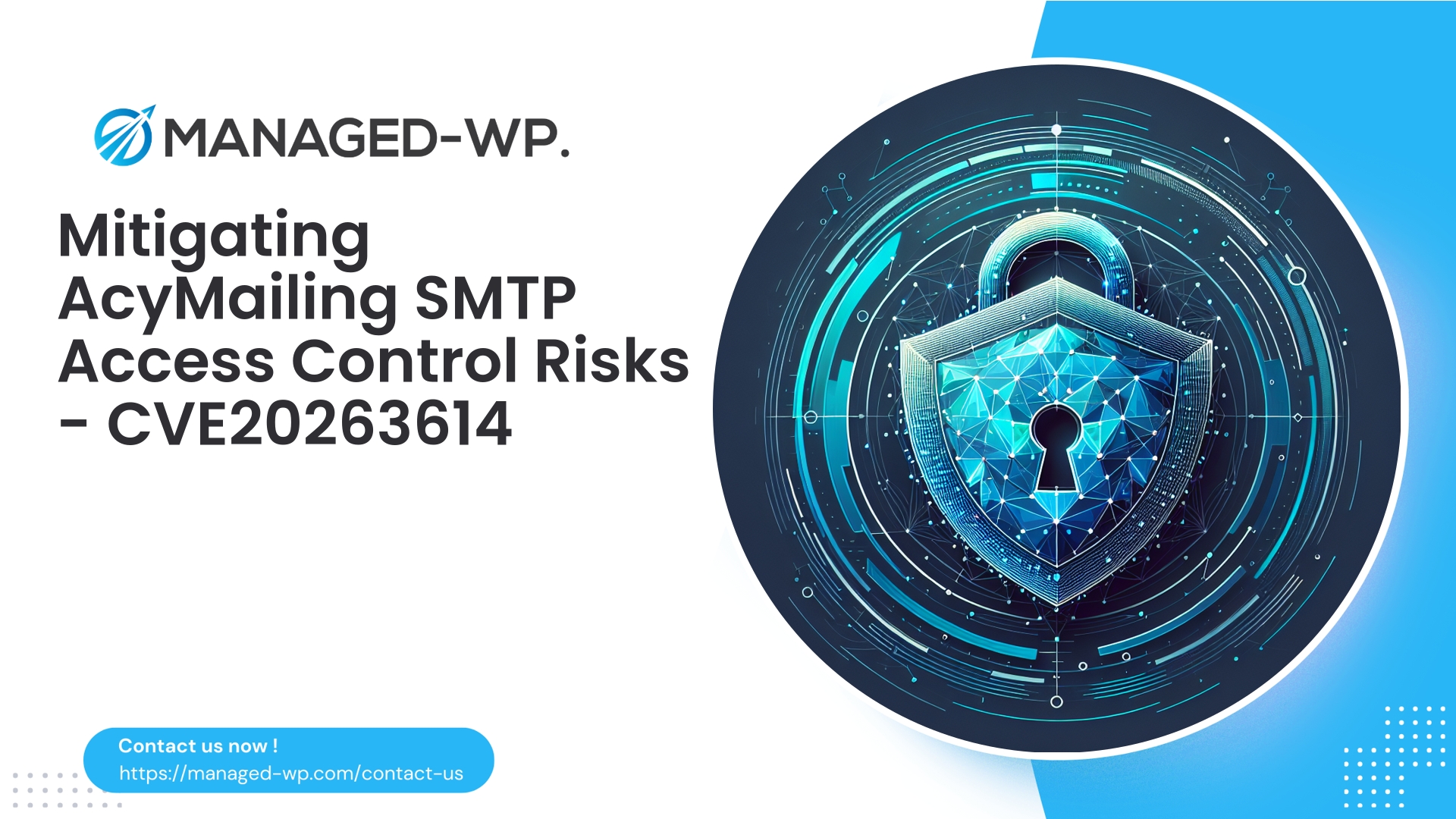 A high-impact broken access control vulnerability (CVE-2026-3614, CVSS 8.8) has been identified in the AcyMailing SMTP Newsletter plugin, affecting versions 9.11.0 through 10.8.1. This flaw permits authenticated WordPress users with the Subscriber role to escalate privileges by bypassing necessary authorization checks on the plugin’s endpoints. The vendor’s patch, released in version 10.8.2, remedies this critical issue. Immediate updating to version 10.8.2 or later is imperative. Where immediate updates aren’t feasible, employing Web Application Firewall (WAF)-based virtual patching and hardening is strongly advised — capabilities offered by Managed-WP’s advanced protection services.