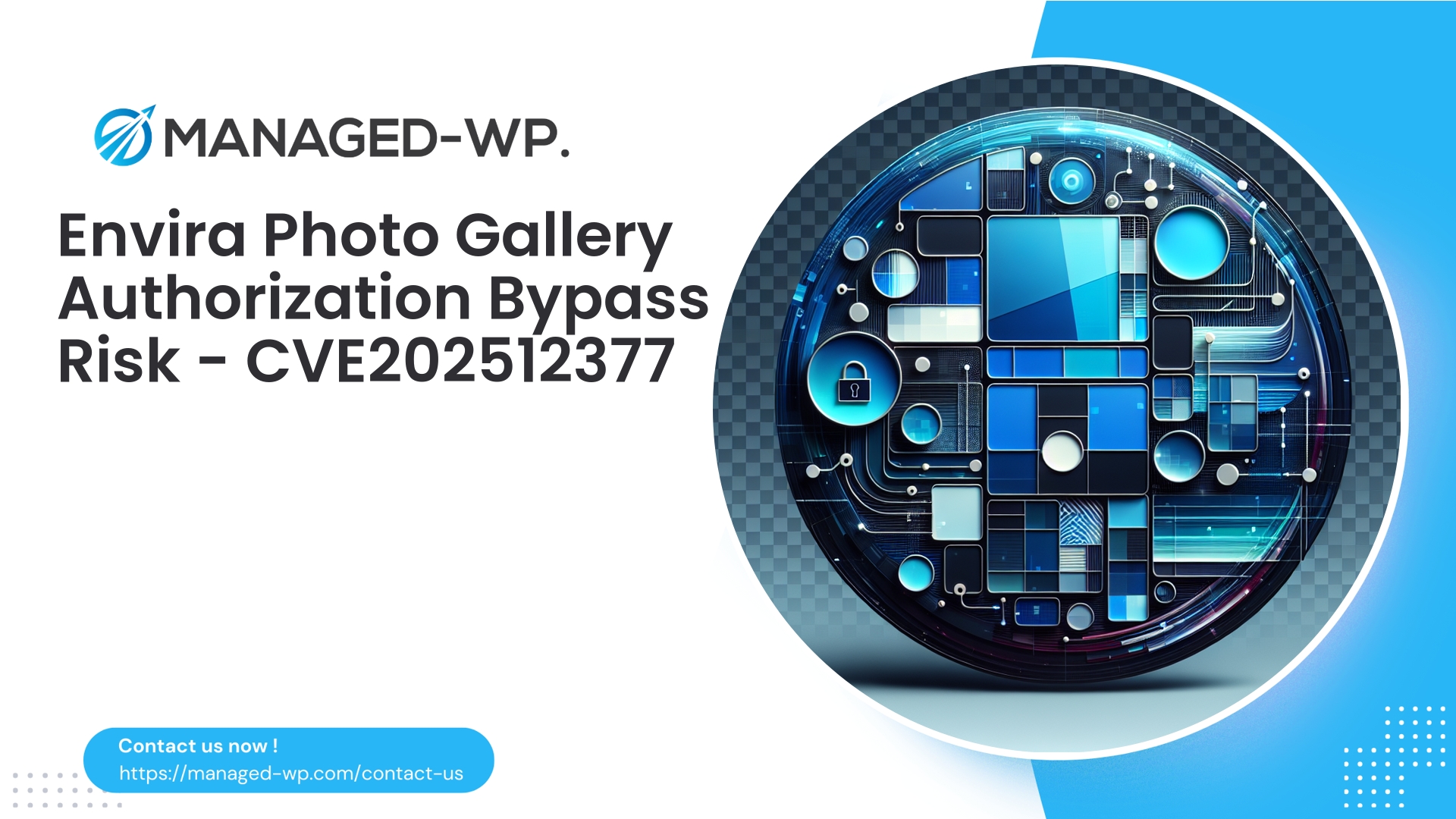 概括: 安全专家发现 Envira Photo Gallery WordPress 插件(版本 1.12.0 及更早版本)存在一个访问控制漏洞,该漏洞允许拥有作者级别权限的已认证用户执行未经授权的图库操作。此漏洞编号为 CVE-2025-12377,已在 1.12.1 版本中修复。该漏洞会使网站面临内容篡改和未经授权访问的风险。本文将从专家角度概述该风险、检测技术、缓解策略,以及 Managed-WP 的 Web 应用程序防火墙 (WAF) 如何有效保护您的网站。